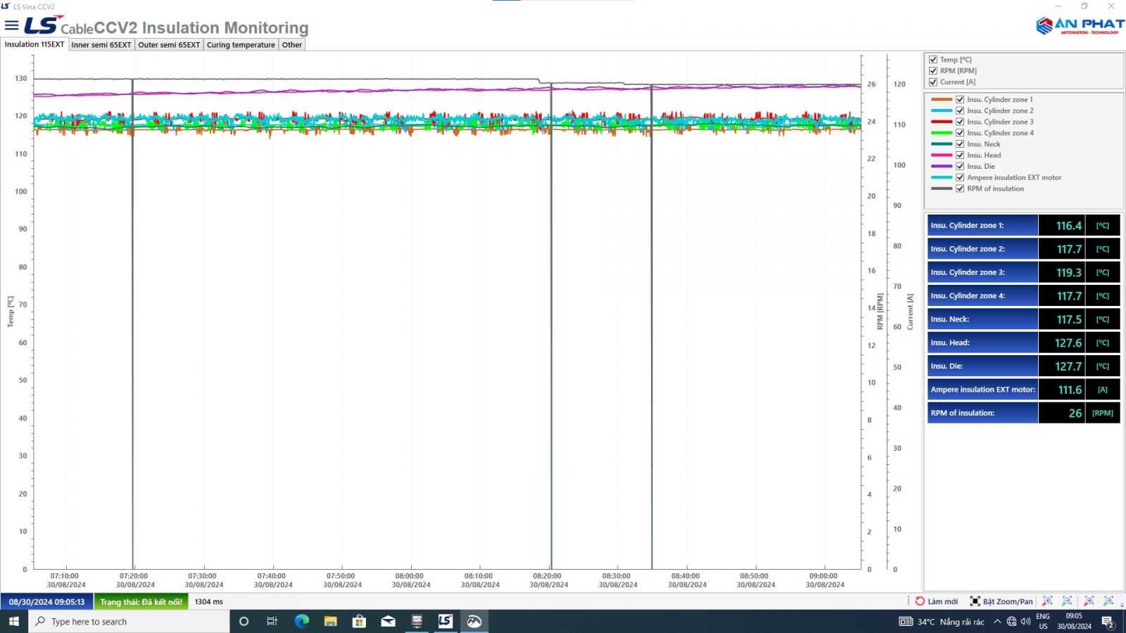 Hệ thống giám sát dây chuyền sản xuất bọc cáp trung thế được bên mình phát triển dựa trên nền tảng C# (WPF). Hệ thống có chức năng: