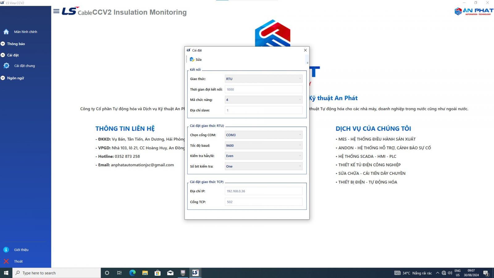 Hình 9. Cửa sổ cài đặt kết nối Modbus RTU