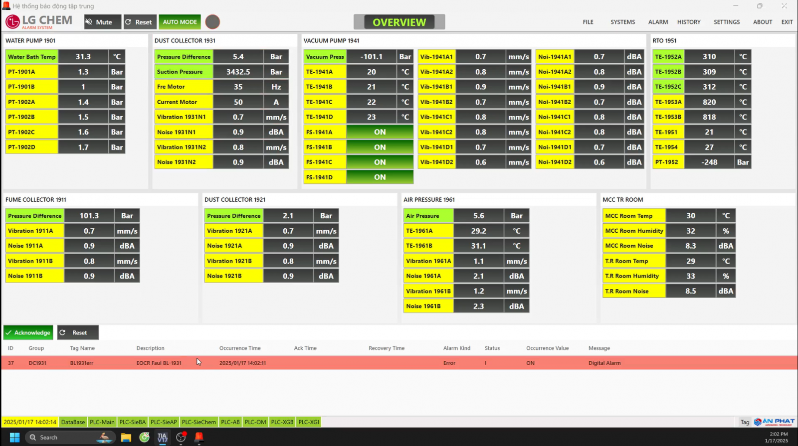 Hình 2. Giao diện giám sát tổng quan của toàn bộ hệ thống tập trung nhà máy LG Chem
