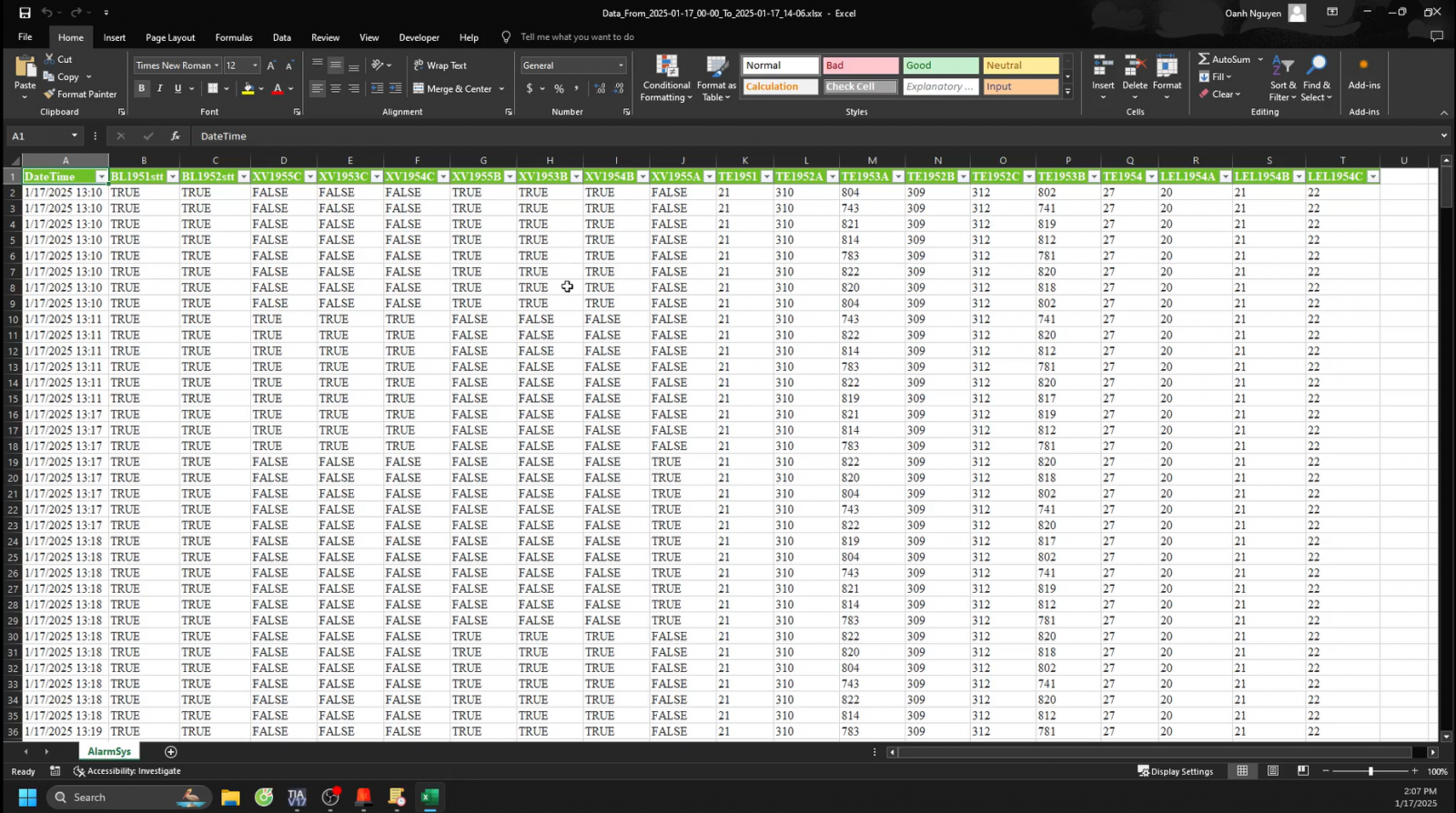 - Tab dữ liệu alarm của các thông số, lựa chọn dữ liệu alarm để xuất excel.